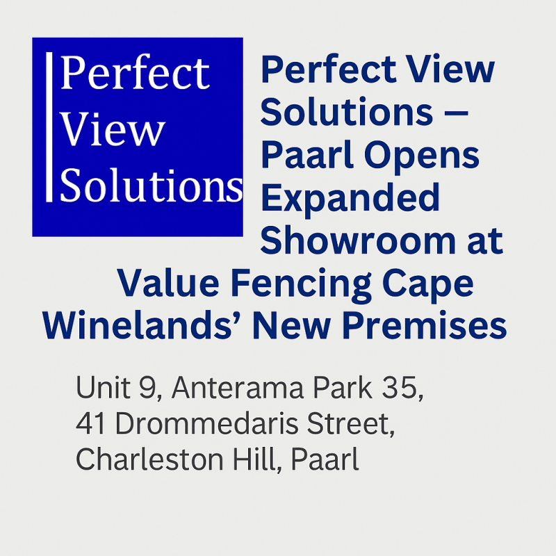 Paarl, Western Cape - May 2025 - We are thrilled to announce the official relocation of Perfect View Solutions - Paarl to a larger, upgraded showroom now located inside the prestigious new premises of Value Fencing PVC Cape Winelands, at Unit 9, Anterama Park 35, 41 Drommedaris Street, Charleston Hill, Paarl.